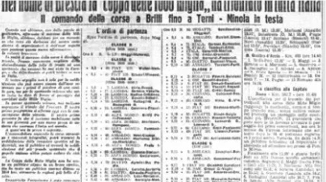 Fin dalla prima edizione la corsa seppe unire agonismo e spettacolo. La cronaca sulle pagine de «Il popolo di Brescia», predecessore del Giornale di Brescia, raccontava un entusiasmo senza precedenti: «il successo della corsa è diventato un trionfo», scriveva il quotidiano il 27 marzo del 1927, parlando non solo di uno «spettacolo solenne che tutta Italia ha dato di fronte al passaggio dei corridori della Mille Miglia», ma anche di uno «spettacolo che nessuno ha mai visto in Europa».